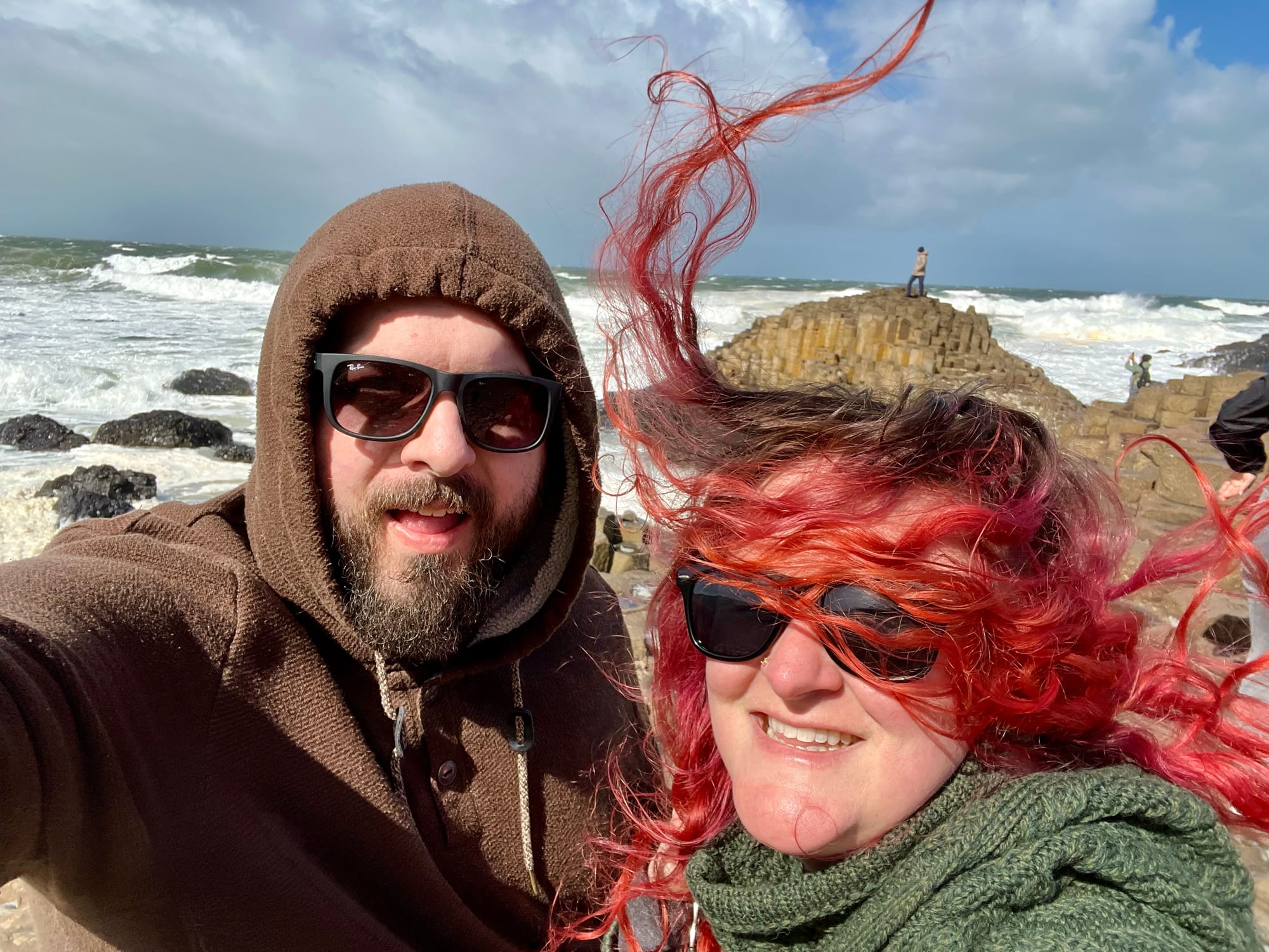 About 20 minutes from the Dark Hedges was our next stop, the Giant's Causeway. The Giant's Causeway is an area of hexagonal basalt columns formed by volcanic eruptions. We've seen similar basalt columns in Iceland, so it was exciting to get to see them here as well.