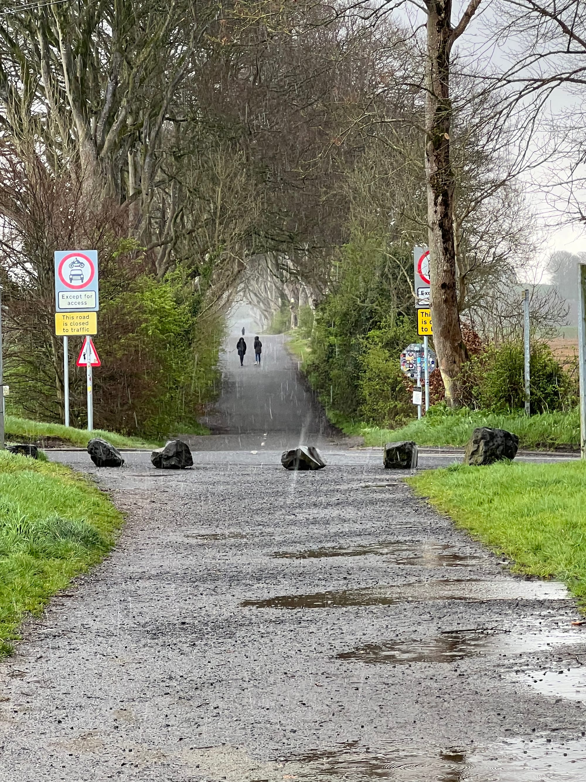 Today, we wanted to see a few of the natural sites while we were in Northern Ireland. First on the list was "The Dark Hedges". This is a road surrounded by spindly beech trees that form a beautiful and almost eerie tunnel. Over 150 trees were planted originally to create an imposing entrance to the "Gracehill House". In 2023, a survey was conducted and 86 of the trees remained and it was estimated that they were between 300-350 years old, far longer than the typical age range of the Beech tree. To further protect the trees, which root close to the ground, traffic on the road has now been banned.